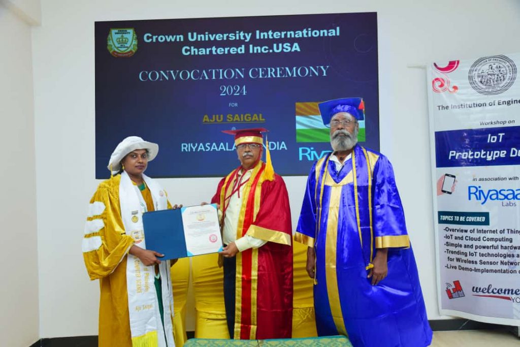 I would like to thank the Chancellor, Crown University Intl. Chartered Inc. and partner campuses world-wide, The Board of Trustees, the Governing Council, The International Advisory Board of Standards and the entire wakeful staff for the confidence and responsibility reposed in me to lead this University and its partner campuses world-wide.